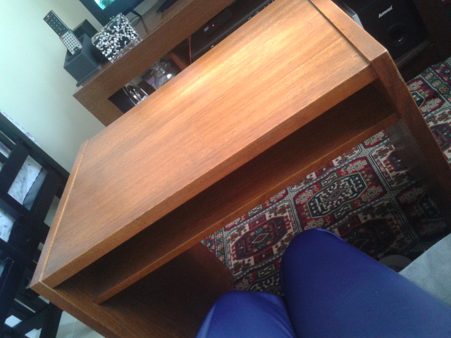 Fiz uma mudança em na mesa que usava para fazer artesanato lá na casa da minha mãe, e trouxe pro apê quando estava fazendo as coisas do casamento, de tanto minha mãe reclamar que a mesa era muito feia (e era mesmo rsrs) dei uma repaginada e agora ela ser como mesa do computador no outro quarto, a foto não tá muito boa mas dá para ver ...